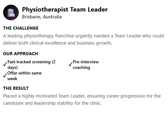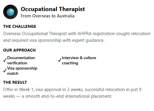 Skip generic ads and guesswork. Get matched to roles that fit where you want to work - clinic, community, schools, or hybrid - with mentoring, personal development plans, and for overseas clinicians, 482/186 sponsorship plus guidance for AHPRA/SPA.